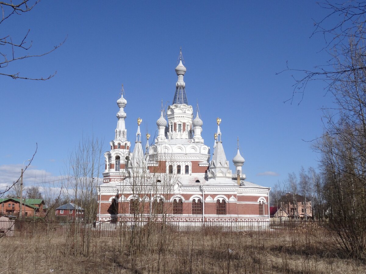 Здесь с 1830-х годов располагались гвардейские части. Сначала это был Образцовый кавалерийский полк, затем гвардейская конная артиллерия, а перед Первой Мировой войной Сводно-Казачий полк, составлявший личный конвой царя. Долгое время полковая церковь была деревянной и только в 1897 году, когда отмечалось 100-летие Павловска, зашла речь о строительстве каменной церкви. При проектировании храма настоятель отец Иоанн Жемчужин вынужден был считаться с капризами Великого князя Константина Константиновича, владельца Павловска. Константин рассматривал проекты по много месяцев, требовал их улучшения, но денег на строительство не давал. В конце концов, в 1904 году храм был построен по проекту известного архитектора фон Гогена.