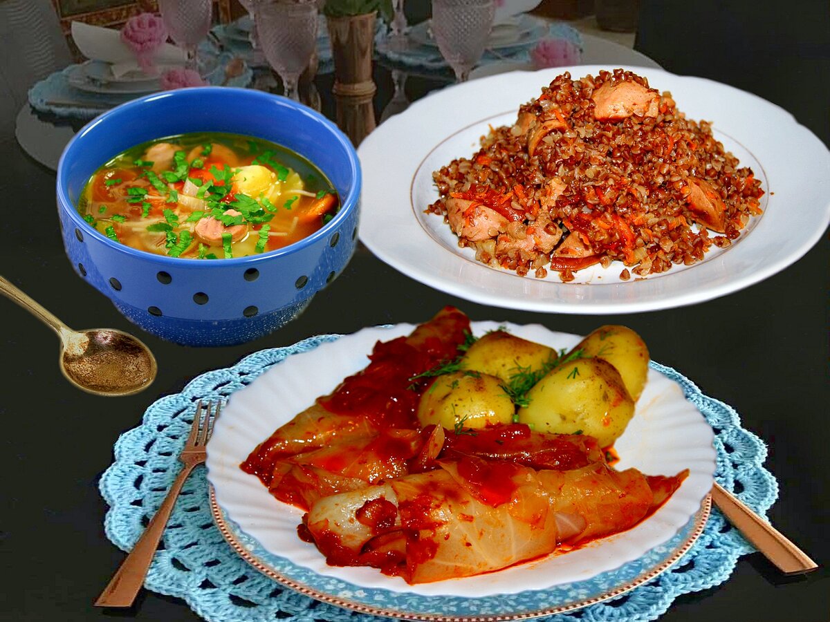 Сделала подборку трёх простых рецептов с сосисками. Готовить будем с капустой, гречкой, а также добавим в овощной суп. В конце статьи вас ждёт бонус - ссылка на «жаркое» с сосисками. Сосиски по-польски Продукты: 9 сосисок, 9 капустных листьев, 1 луковица, 1 ст. л. томатной пасты, 1/2 мультстакана воды, растительное масло Приготовление: 1. В чашу мультварки положить капустные листья, а сверху сосиски, надрезанные с кончиков на 4 части (чтобы не треснули). Залить водой. 2. Установить программу «Варка на пару» 5 минут (отсчёт времени от начала закипания). 3. После сигнала вынуть листья и сосиски. Завернуть сосиски в листья. 4. В чашу налить растительное масло. 5. Установить программу «Жарка – Овощи». 6. В нагретое масло положить сосиски, завёрнутые в листья. Обжарить с двух сторон. Выложить в посуду. 7. В чаше обжарить нарезанный лук. Добавить томатную пасту, полстакана воды. Довести до кипения. Программу выключить. 8. Положить капусту с сосисками в чашу, полив сверху получившимся, томатн