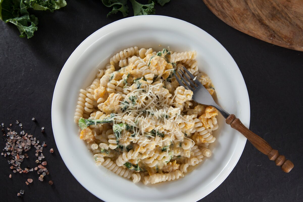 Для этого рецепта понадобится тыква с ярко-оранжевой мякотью — так паста получится ярче, солнечнее и вкуснее. И она точно понравится детям!