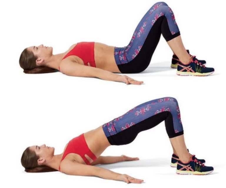 Комплекс упражнений #1 Упражнение 1. Ягодичный мостик Исходное положение Ложитесь на пол, согнув ноги в коленях. Стопы должны быть прижаты к полу, а руки необходимо положить вдоль туловища. Что делать Поднимайте таз вверх так, чтобы туловище образовало прямую линию с ногами. Следите за тем, чтобы пятки не поднимались. Напряжения в спине вы ощущать не должны. Достигнув верхней точки, оставайтесь в этом положении и максимально напрягайте мышцы ягодиц (около 5 секунд). Спускайтесь, стараясь не касаться пола ягодицами. Упражнение 2. Мертвая тяга Исходное положение Ноги на ширине плеч, носки должны смотреть прямо. Поясница должна быть чуть выгнута, потому что таз необходимо будет отводить назад. В руки необходимо взять гантели (около 5 кг). Что делать Руки отводим перед собой, разворачивая их ладонями к ногам. Начинаем наклоняться туловищем вперед, оставляя колени в исходном положении. Центр тяжести должен стремиться вперед, компенсируя его отведением таза назад. Немного задержитесь в нижн