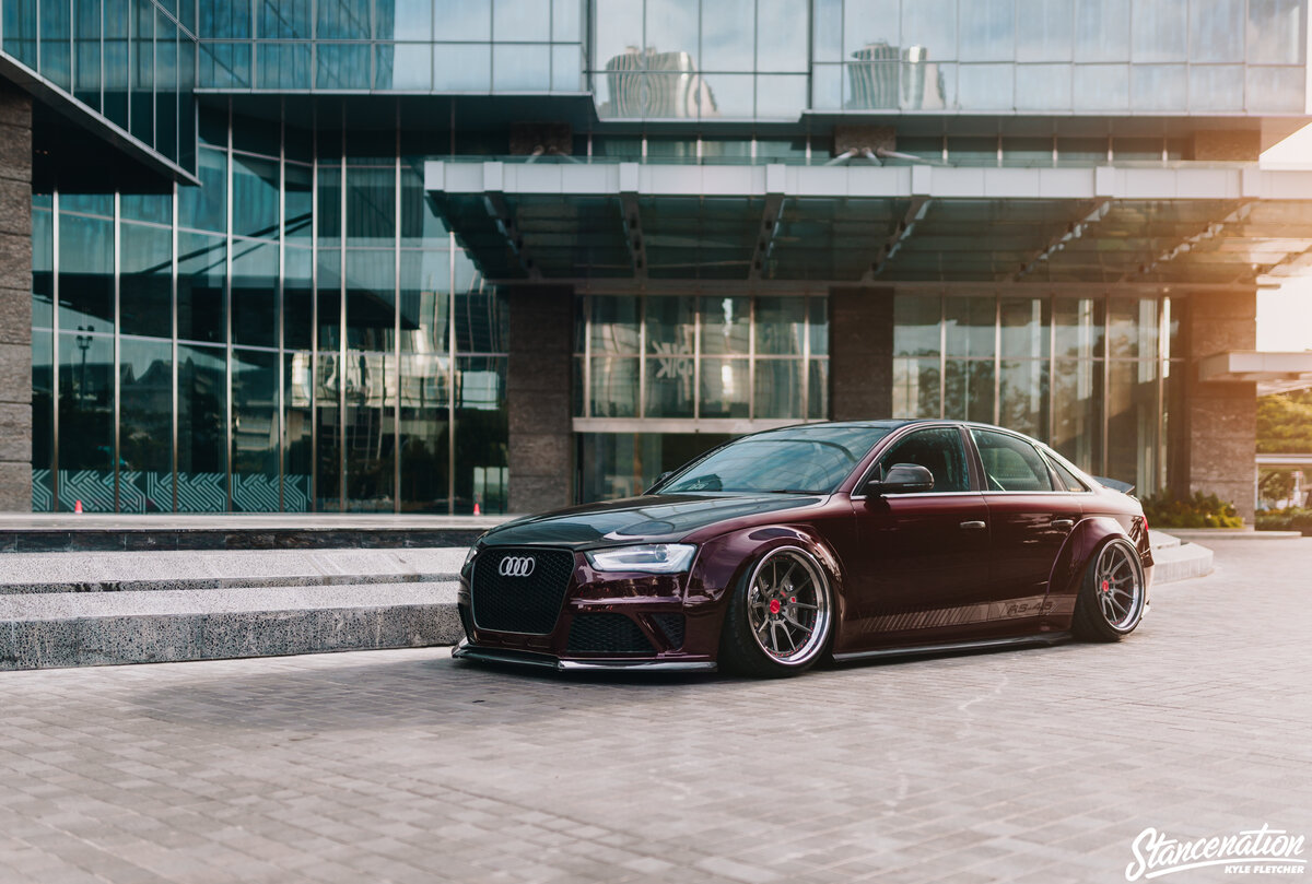 Есть много автомобилей, которые следуют стратегии "меньше - больше", на самом деле многие из моих любимых сборок именно такие. Я, без сомнения, отстаивал этот стиль сборки здесь. Как обратное, я бы не сказал, что мне не нравятся автомобили с большим количеством вещей, сделанных с ними. Я просто думаю, что как только вы усложняете вещи с более сложной сборкой, больше имеет тенденцию уходить в сторону. Требуется коллективное видение, чтобы иметь возможность создавать автомобили со списками мод, которые длиннее, чем статьи, которые мы пишем о них. Audi A4 Леонарда Цезаря 2010 года-яркий пример большого честолюбия, большого количества качественных деталей и настоящего видения мечтателей. Леонард питает сильную любовь к марке Audi. Это не его первая сборка, основанная на A4, его первый автомобиль - B6 A4 с длинным списком трофеев автосалона. Вооружившись всем своим предыдущим опытом, он решил построить нечто столь же уникальное, сколь и стильное. То, что он придумал, показано здесь, все в с
