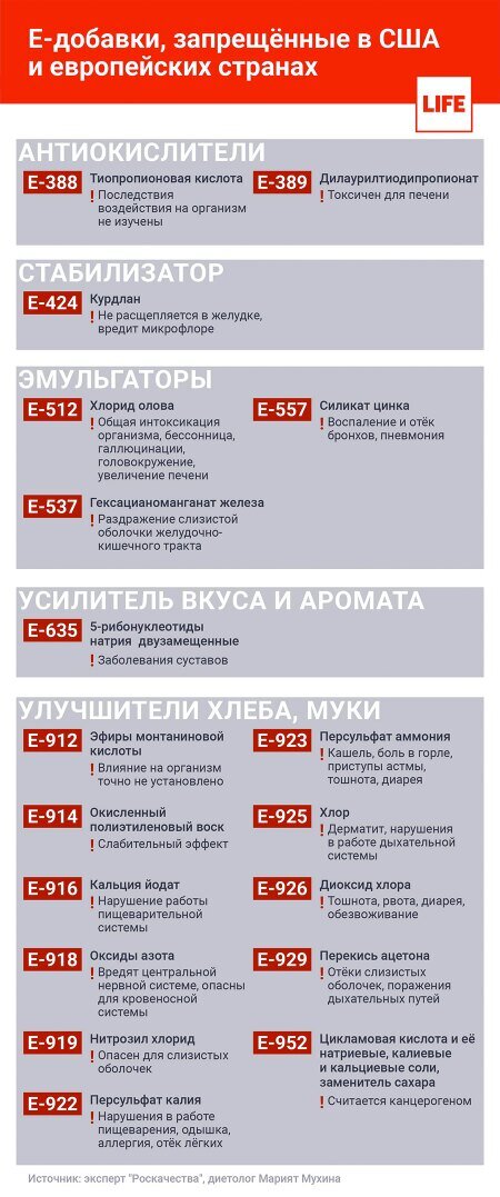 Весь список Е-добавок. Есть и не вредные. Будьте внимательнее при выборе товара.