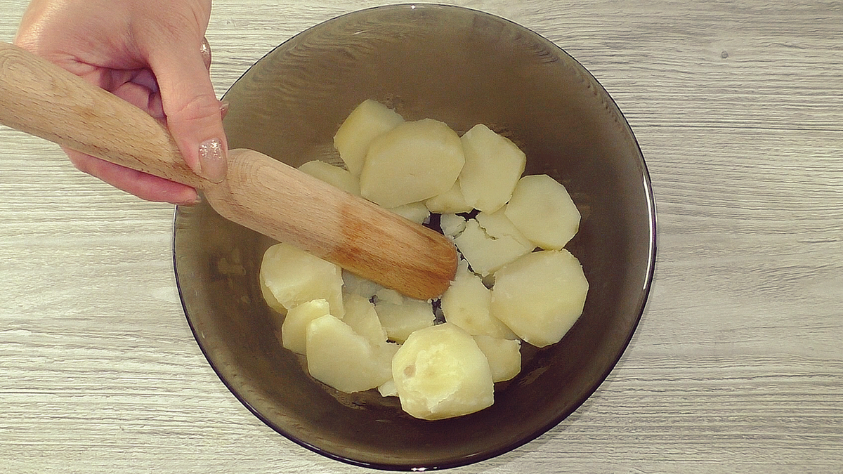 Я картофель отварила, размяла и дала немного остыть.