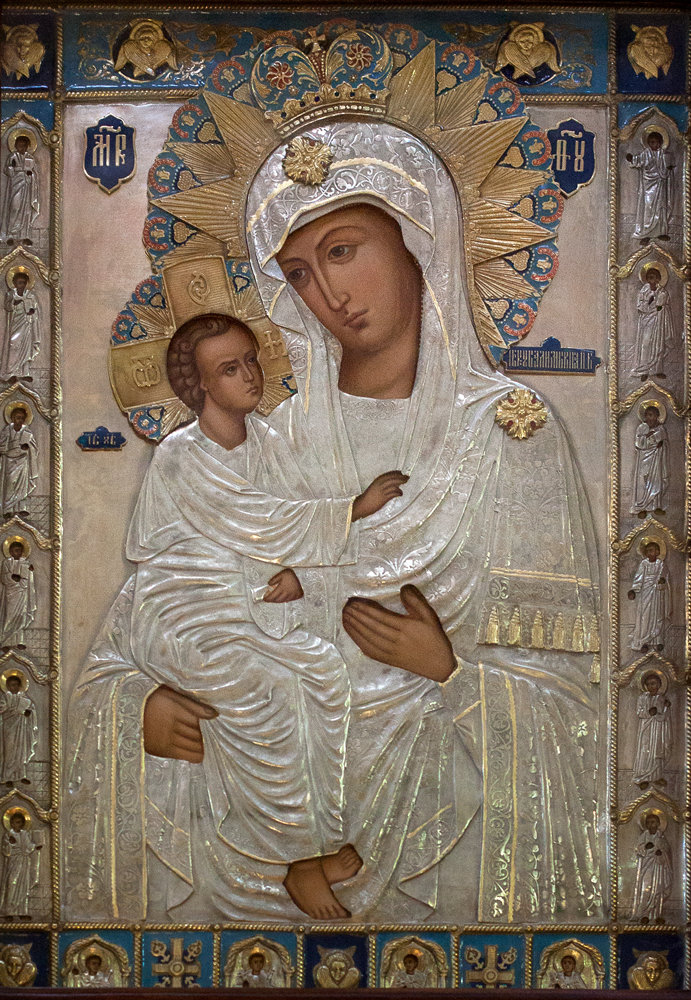 Пресвятая Госпоже, Владычице Богородице, Упование всех уповающих на Тя, Заступнице печальных, Прибежище отчаянных, вдов и сирот Питательнице! Услыши и помилуй ны, грешныя и недостойный рабы Твоя, со умилением ко пречистому Твоему образу припадающыя: умоли, Милосердая Владычице, Сына Твоего и Господа нашего Иисуса Христа, да отвратит от нас праведный гнев Свой, да простит грехи и беззакония наша, яко да сподобимся благостию Его скончати житие наше в покаянии и получйти милость Его со всеми избранными Его: яко благословена и препрославлена еси во веки веков. Аминь.