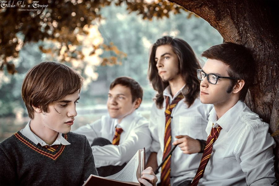 Начнем с того, как вообще могла подобраться такая странная компания, которую мы увидели в воспоминаниях Снейпа в 5й книге. Ну что общего может быть у Сириуса и Питера, Джеймса и Люпина? Как такие люди могли подружиться и дружить 10 лет? С Джеймсом и Сириусом все понятно - эти двое максимально похожи. Выходцы из богатых чистокровных семей (оба на чистоту крови плевать хотели), блестящие студенты и талантливые волшебники (стать анимагом в 15 лет - это вам не экспеллиармусом пуляться), Джеймс чемпион квиддича, а Сириус местный красавчик и "плохой парень" (на его привлекательной внешности и летающем мотоцикле акцент в книгах делали не раз). Люпин и Питер совсем другие - проще, скромнее. Во всяком случае, Люпин. У Питера явно были не реализованные амбиции, учитывая, какой путь он избрал после школы.