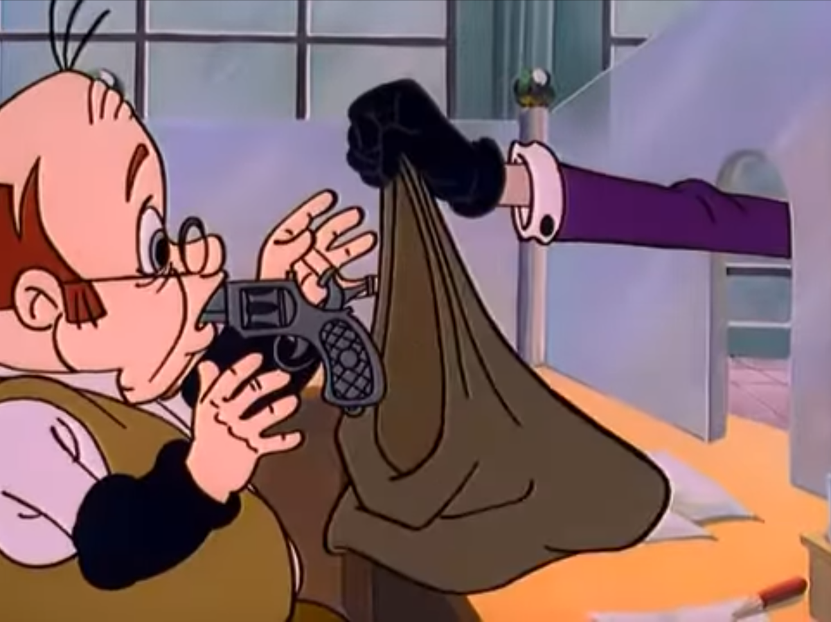 “Деньги у меня. Бандиты остались на площади. Спешите на помощь полицейским”.
