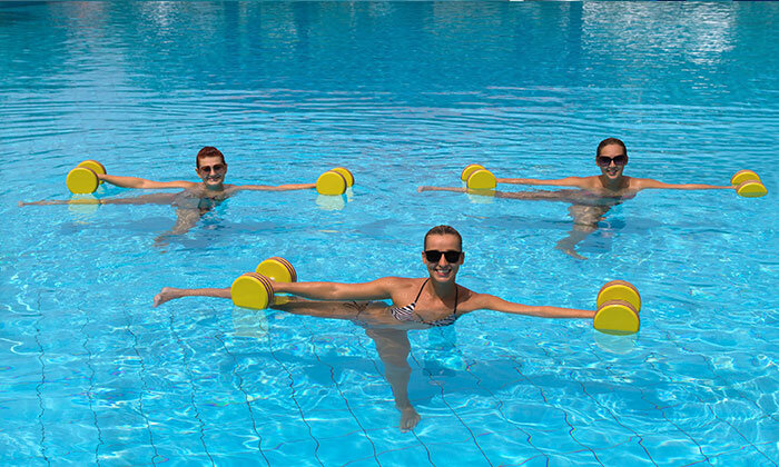 • Вода, при выполнении упражнений создает дополнительную нагрузку на мышцы, что в свою очередь делает занятия намного эффективнее;