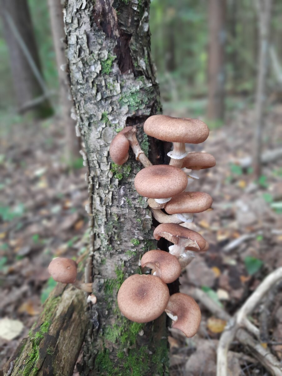 Мама практически сразу нашла пенек с опятами.