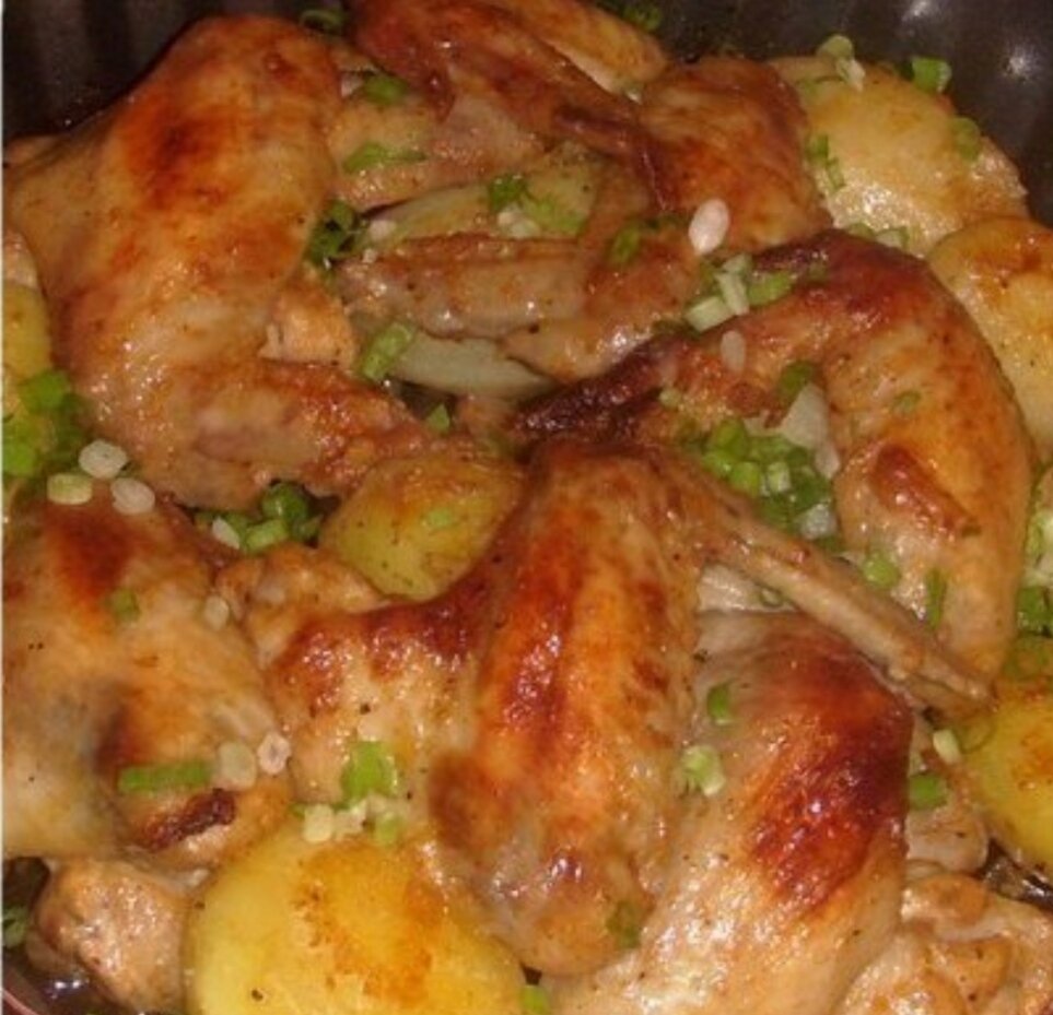 1. С КАРТОШКОЙ - 800 гр крылышек - 500 гр картофеля Маринад: - 1 ст л майонеза - 0.5 ч л горчицы - 1 ст л соевого соуса - соль, перец - немного карри, чеснок Картофель и крылышки уложить в маринад и мариновать часа 3. Уложить в смазанную форму и запекать запекать при температуре 220С минут 40. 2. В СОЕВО-ГОРЧИЧНОМ СОУСЕ 700 г крылышек 2 ст.л. соевого соуса, горчицы и майонеза 2 зуб чеснока 1 ст.л. хмели-сунели Перемешай майонез с соевым, горчицей, сунели и пропущенным через пресс чесноком. Опусти в маринад крылья, убери на 2ч в холодильник, после чего выложи на противень и 180С духовке 20-30 мин. 3. В КЛЯРЕ крылья - 6 шт Мука - 50 г Яйца - 3 шт Соль, перец - по вкусу Из муки, яиц, соли и перца замешиваем кляр. Он похож по консистенции на жидкое тесто. Крылья режем пополам. Солим и перчим. Опускаем крылышко в кляр и обмакиваем его в нём с двух сторон. Кладем в сковороду с разогретым маслом. Обжариваем крылья с двух сторон в большом количестве масла на ме