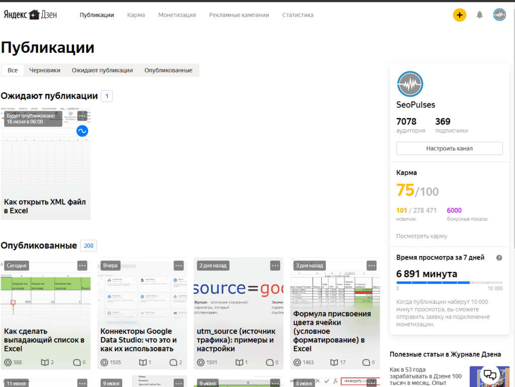 Бонусные показы в Яндекс.Дзен — это система премирования авторов, при которой предоставляется возможность дополнительно показать статью и получить больше дочитываний. Как получить бонусные показы в Яндекс.Дзене Выдаются баллы каналу в Дзене в следующих случаях: В случае с высокой кармой премирование может быть выше, если пользователь мастер (достиг монетизации, 10000 минут чтения). В итоге таблица выглядит так: Карма — Баллов новичку — Мастеру 70-79 — 2000 — 25000 80-89 — 5000 — 50000 90-100 — 10000 — 100000 Пример получения: Важно! Баллы не имеют срока годности и могут быть использованы в любое удобное время. Важно! Показы будут начисляться еженедельно, когда карма не будет падать ниже значения 70. Как потратить бонусные баллы каналу в Дзене Для того, чтобы продвигать публикацию необходимо кликнуть на «троеточие» в правой-верхней части миниатюры и в выпавшем меню выбрать «Продвигать». Далее выбираем начало показов, а также выставляем: Чуть ниже будет примерная результат
