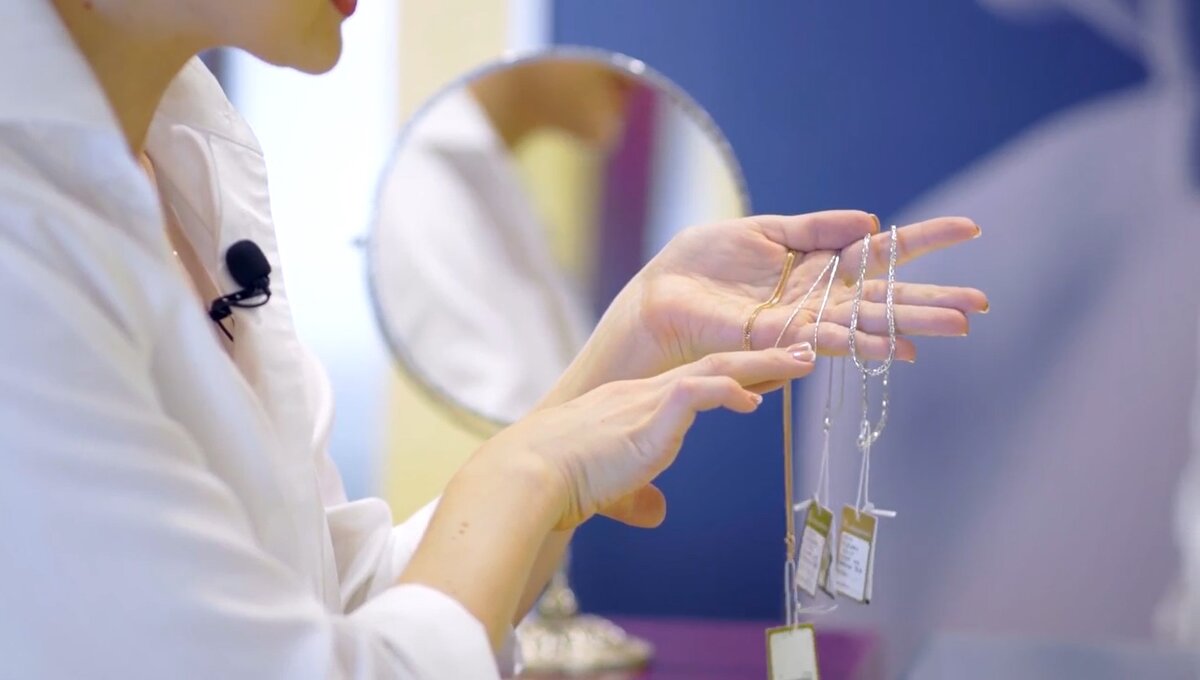 — Имейте в виду, что место, которого касается нижний край цепочки, чаще привлекает взгляды окружающих: если вы не хотите акцентировать эту зону, лучше выбрать цепочку другой длины.