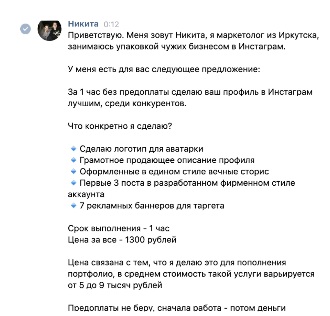 оффер, чтобы он не был похож на спам и