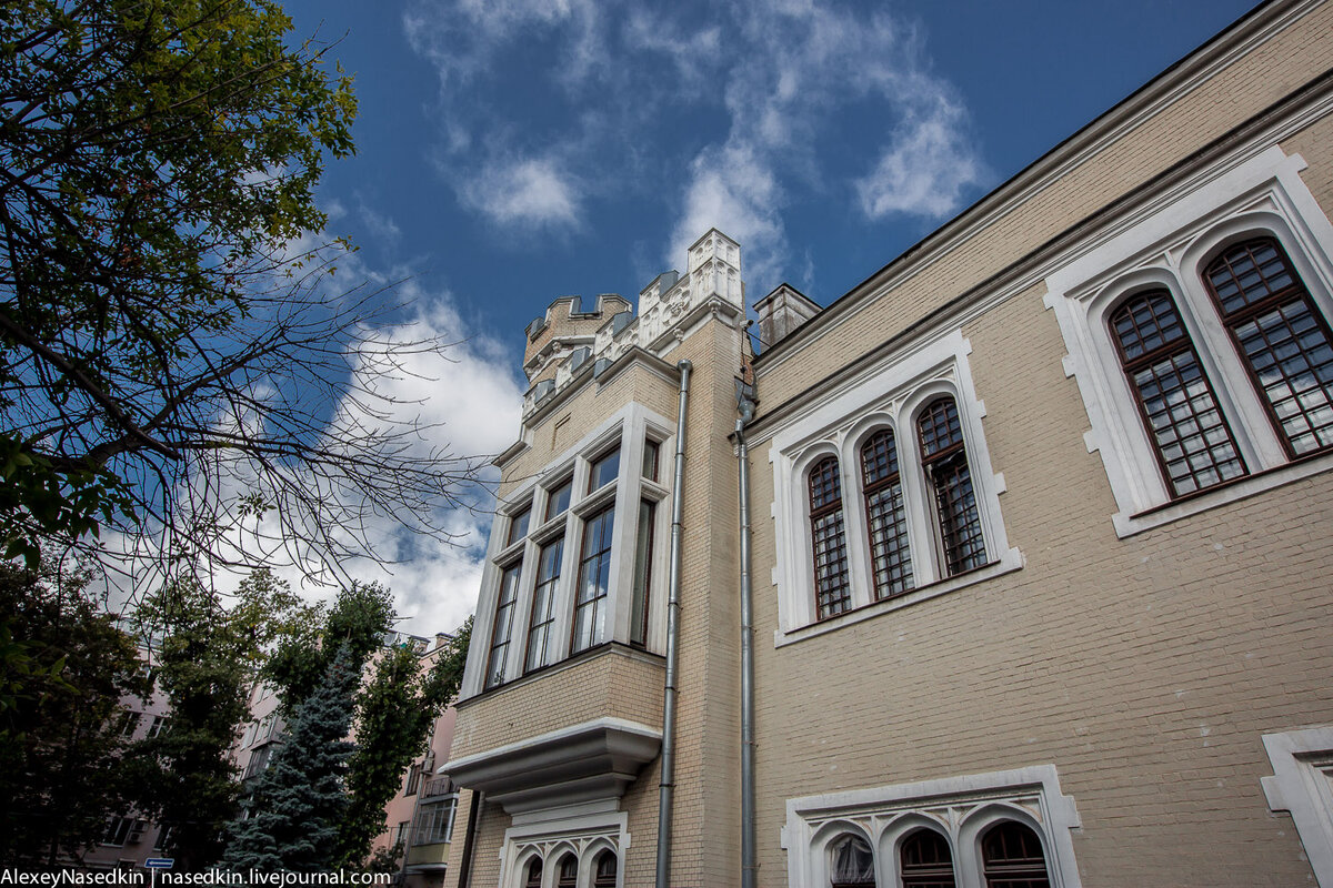 1. Вот так сегодня выглядит жемчужина Ивановской горки - особняк, принадлежавший в 19 веке легендарному Людвигу Кноопу. После его смерти сыновья, Федор и Андрей, разделили отцовское владение пополам. Дом №7 по Колпачному переулку, перестроенный в 1869 году, достался старшему сыну, Федору Львовичу. А вот этот, под номером №5 – младшему, Андрею Львовичу, который построил там в 1900 году неоготический замок. После революции особняки были национализированы, а драгоценное убранство исчезло.