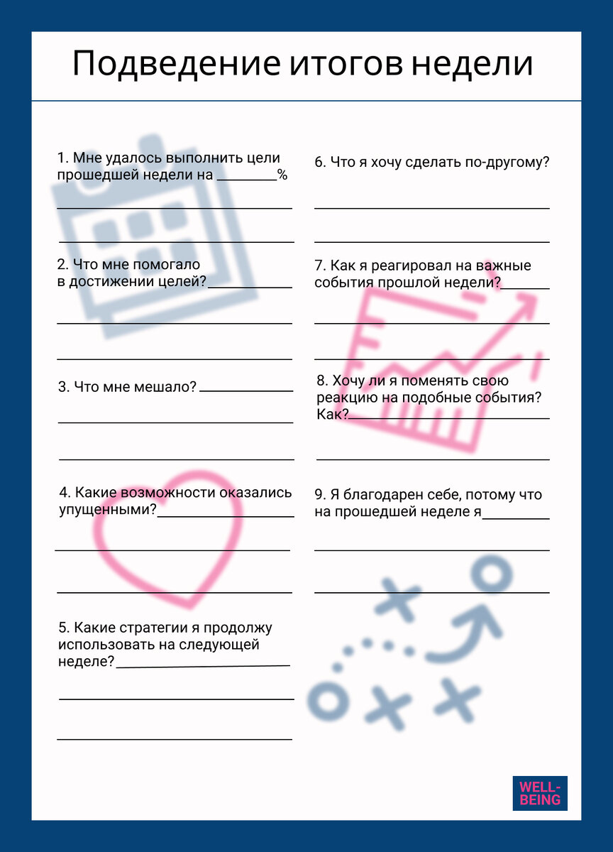 Предлагаю ниже короткий чек-лист для подведения итогов недели.