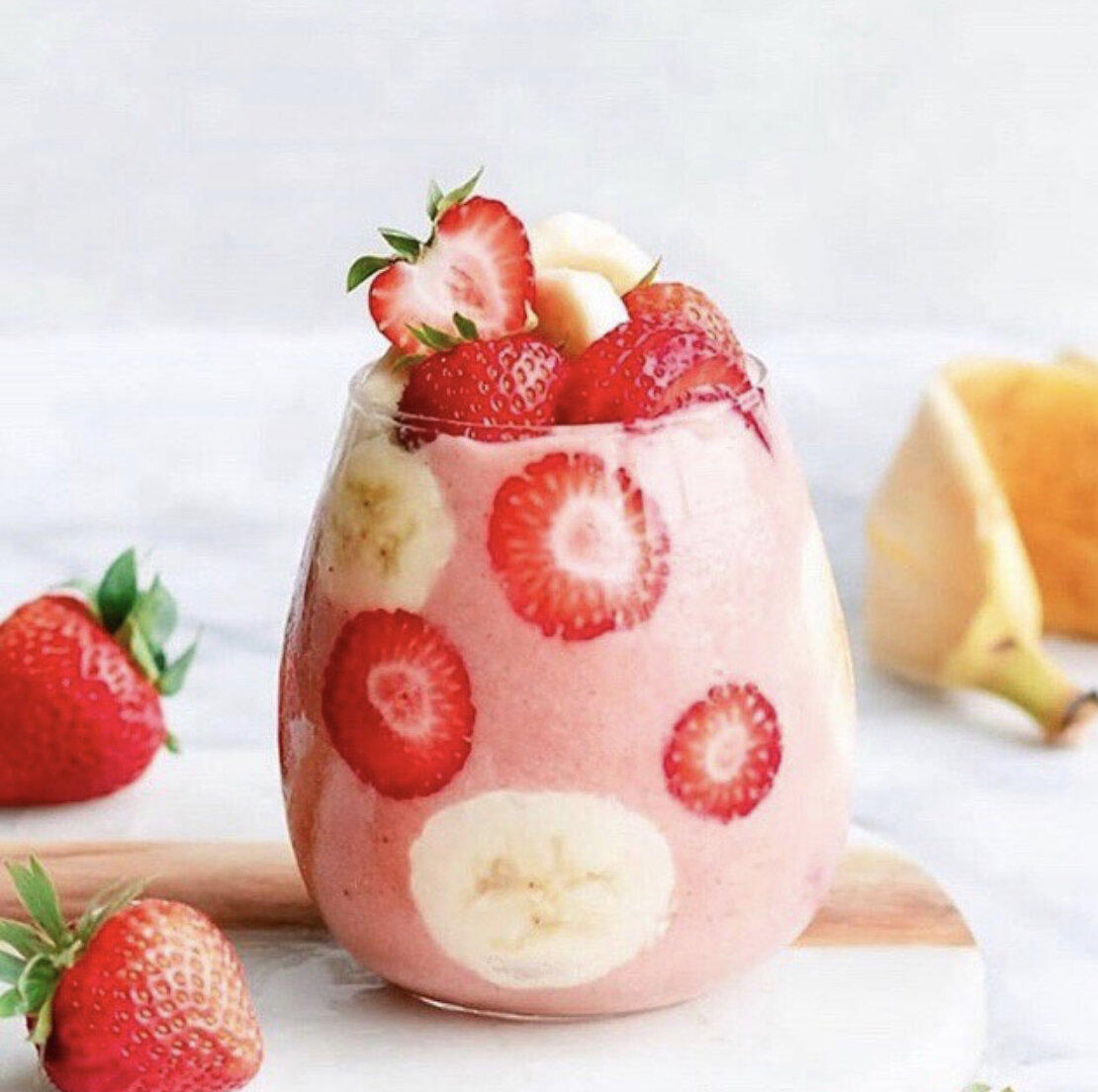 Клубнично-банановый ласси от @cocktails_online