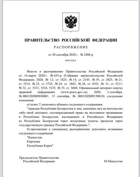 Слухи слухами, а вот уже первые звоночки. С 21 сентября открывается авиасообщение еще с тремя странами. Так, один раз в неделю будут рейсы в столицы Белоруссии, Казахстана и Киргизии. А с 27 сентября откроется возможность перелета в Южную Корею и обратно. По данному поводу на официальном сайте правительства РФ опубликовано соответствующее распоряжение.