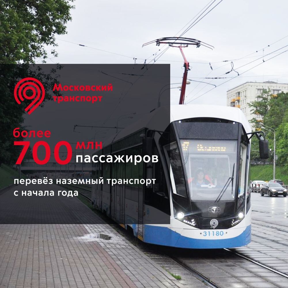 🚃Самый любимый маршрут наземки у москвичей — трамвай № 17 (Медведково-Останкино). С января вы проехали на нем 8,5 млн раз! А каждый день им пользуются 46 тыс. человек. Всего с начала года наземный транспорт перевёз более 700 млн пассажиров.
