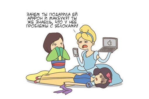 Белоснежка до смерти боится яблок. К сожалению, порадовать ее техникой от популярного бренда невозможно. Зря только подруга решила сделать ей такой подарок :)