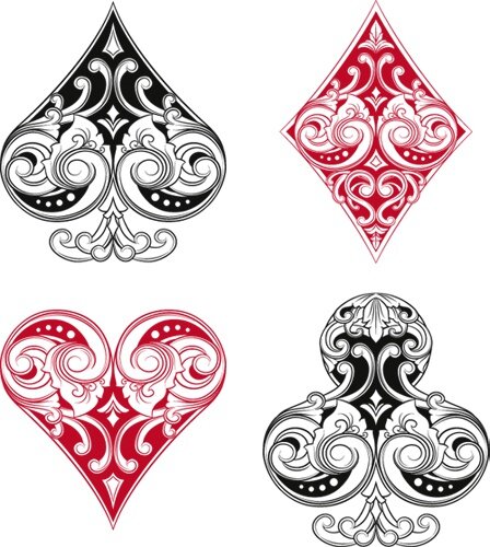 Значки мастей в различных европейских странах были несколько различными. Например, трефовая масть во Франции рисовалась в виде листа клевера, в Испании в виде палицы, а в Германии в виде желудя.