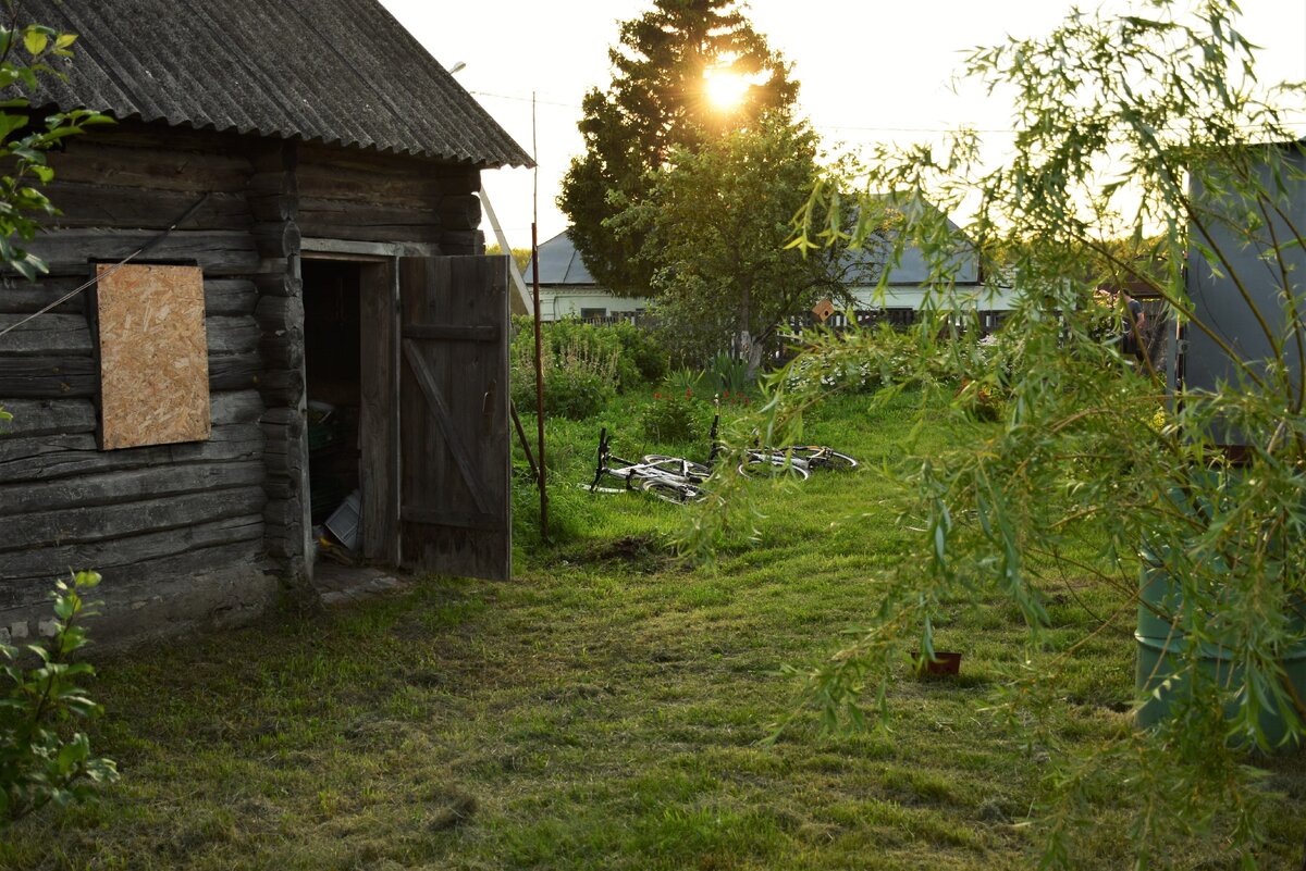 У родных тут небольшой домик, погреб и сарайчик, пару грядок и плодовых кустов, картошка, и небольшой цветник. Примечательно, границы участка просто отмечены деревянными колышками, а вокруг простор и бескрайний вид на лес. Ни от кого не надо прятаться и отгораживаться, полная гармония с природой.