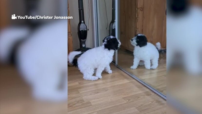 Использован материал: Watch : Puppy sees his reflection for the first time, and his reaction is gold. Источник: wamiz.co.uk. Фото и видео: Christer Jonasson – YouTube