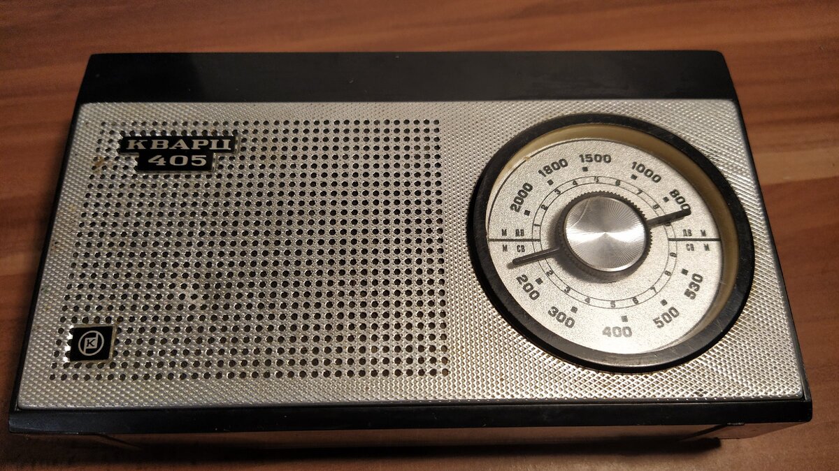 Ура! господа и товарищи. За безумную цену в 4 рубля. 00 копеек. Мною на онлайн аукционе был куплен транзисторный радиоприёмник 4-го класса КВАРЦ 405. Если бы он был рабочий было бы совсем чудесно..., но чудес не бывает. В довесок к самому приемнику получил еще и чехол, но без ремешка. Что с чехлом, что без, приемник реально красив. да и почему ругают советскую технику за унылость лично Я упорно отказываюсь понимать.