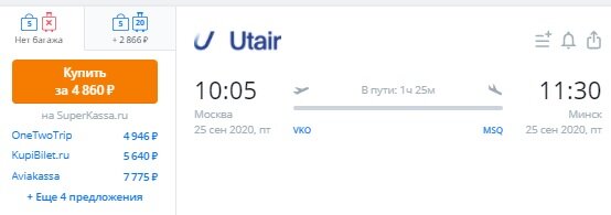 Но вот уже сегодня я обновила тарифы на сентябрь. И, приятной новостью стали перелеты на авиакомпании #Utair - выложены рейсы на прямой самолет Москва-Минск по цене от 4860 рублей за человека.