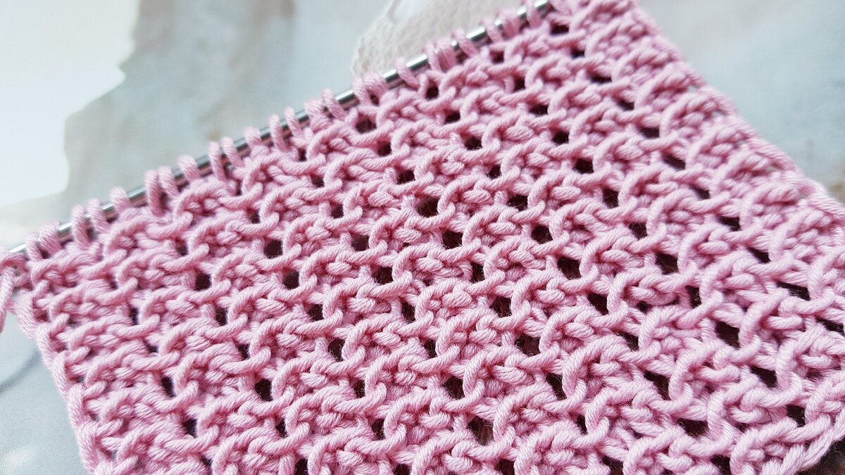 Для тех, кто не очень любит гладкие узоры, прекрасно подойдёт это незаурядное переплетение. Ячейки, выстроенные в ряд, идеально строят фактуру, которая подойдёт для вязания и габаритных изделий, и приятной мелочёвки, например, варежек...