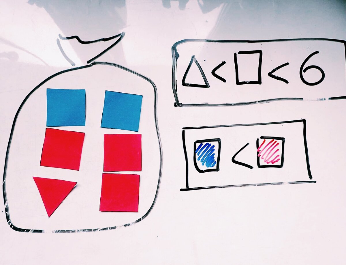 🔴 Желтых квадратов меньше, чем синих фигур, а синих фигур меньше, чем красных