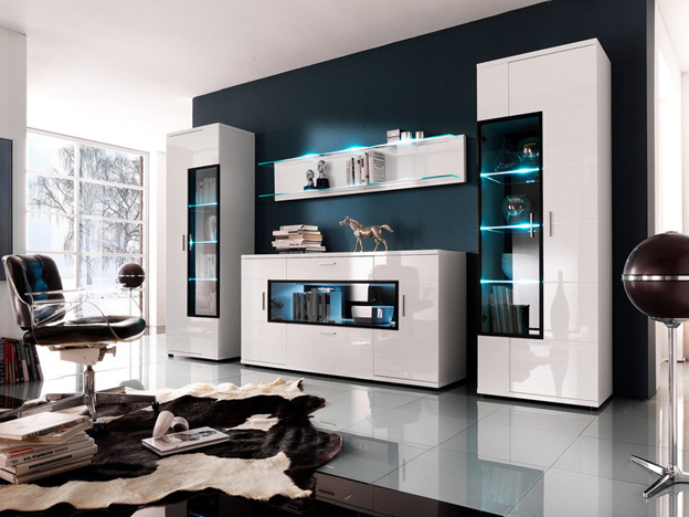 Огромное преимущество современной модульной мебели в том, что комплект состоит из отдельных блоков, выполненных в едином стиле и взаимозаменяемых. То есть, расстановку и местоположение его элементов можно менять в произвольном порядке. Как советуют психологи, перестановку мебели следует проводить минимум раз в год. А с таким гарнитуром кардинально поменять облик помещения не составляет ни малейшего труда. Это превосходное решение для молодых, деятельных личностей, приветствующих перемены в своей жизни, не терпящих рутины. Не лишней такая мебель будет и для молодых семей, ожидающих появления на свет ребенка: как правило, новый член семейства требует другой организации жизненного пространства. Мы составили подборку лучших модульных гостиных для ценителей простых и изысканных интерьеров Для небольшой гостиной подойдет мини-стенка с парой шкафов, тумбой под телевизор и полочкой. Она занимает минимум места и достаточно вместительна. Кроме того, шкафы можно разнести в разные концы комнаты