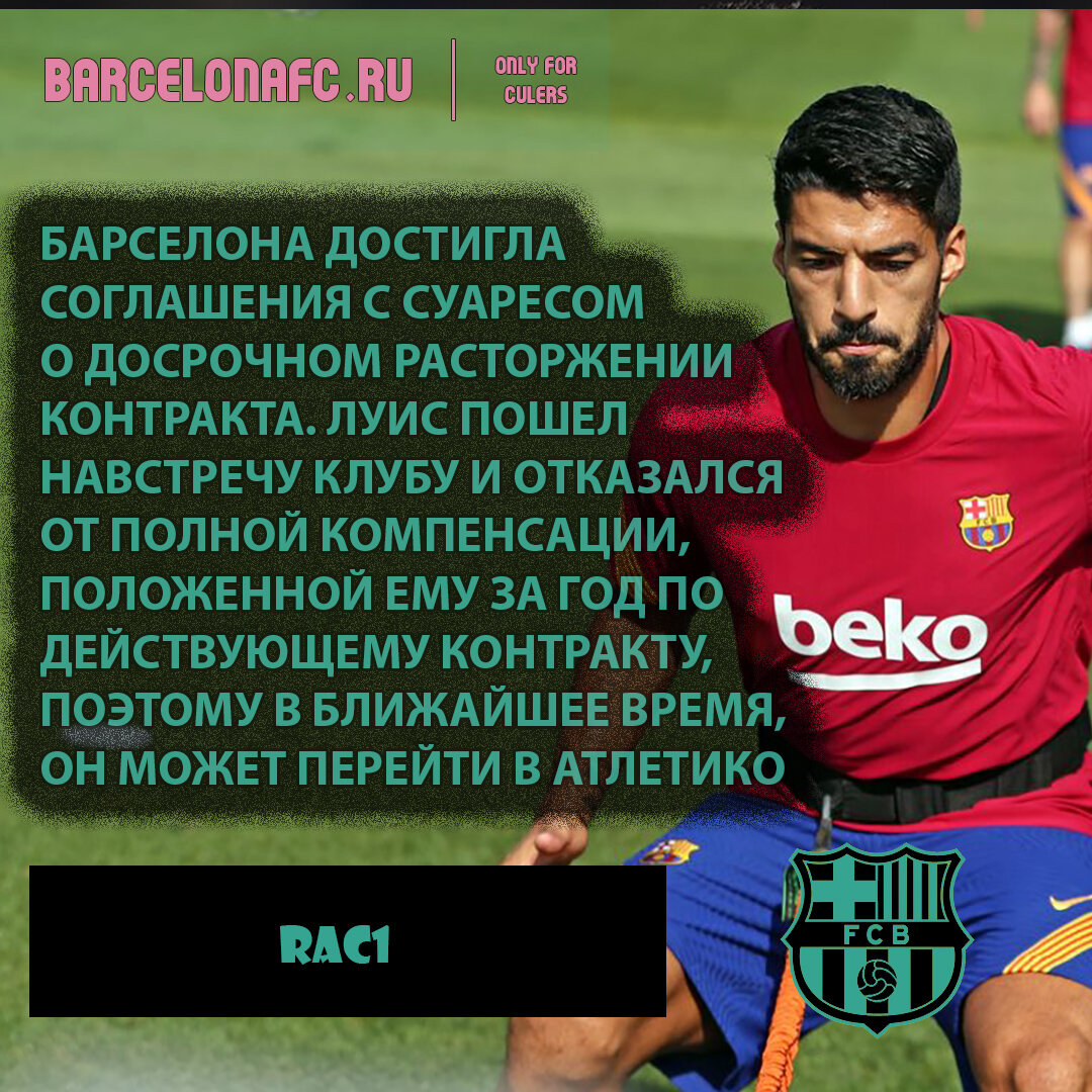 RAC1: Барселона достигла соглашения с Суаресом о досрочном расторжении контракта