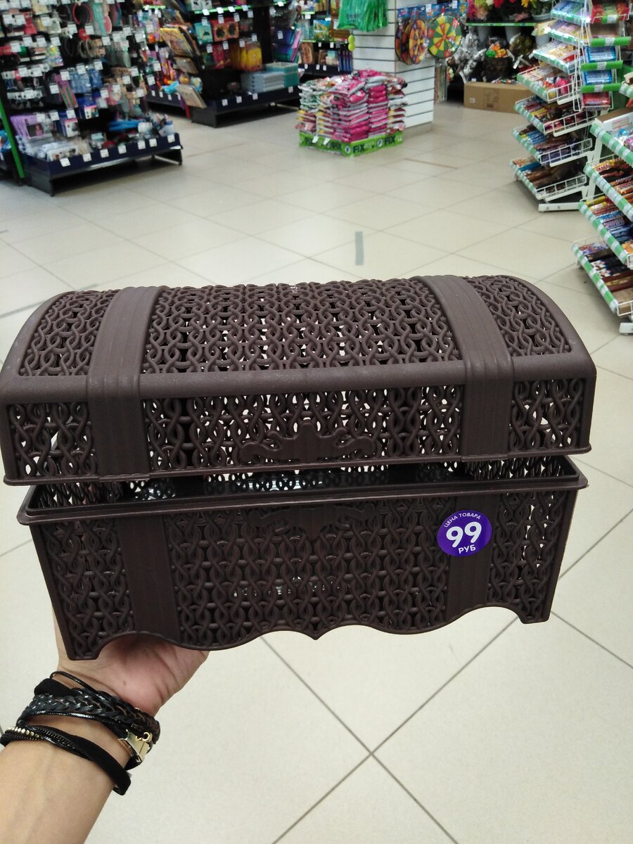 Красивые, вместительные. Представлены в шоколадно-коричневом и бежево-розовом цветах. Такие коробки можно поставить как внутрь шкафа, так и на видное место-ну чем не самостоятельный предмет декора?! Единственный минус-крышка неплотно закрывается (получается немного чуть-чуть приоткрытым). Но не знаю, может это не на всех так.