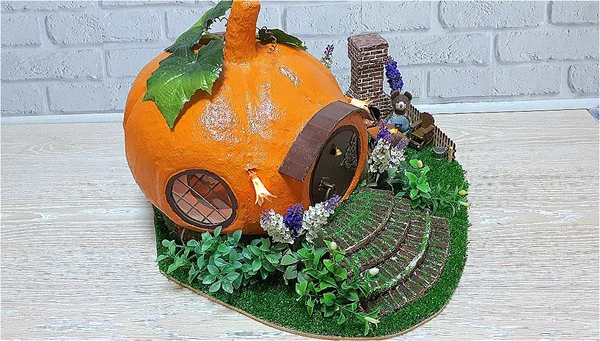 Домик не боится пыли, травку можно чистить пылесосом, саму Тыкву протирать влажной тряпочкой.