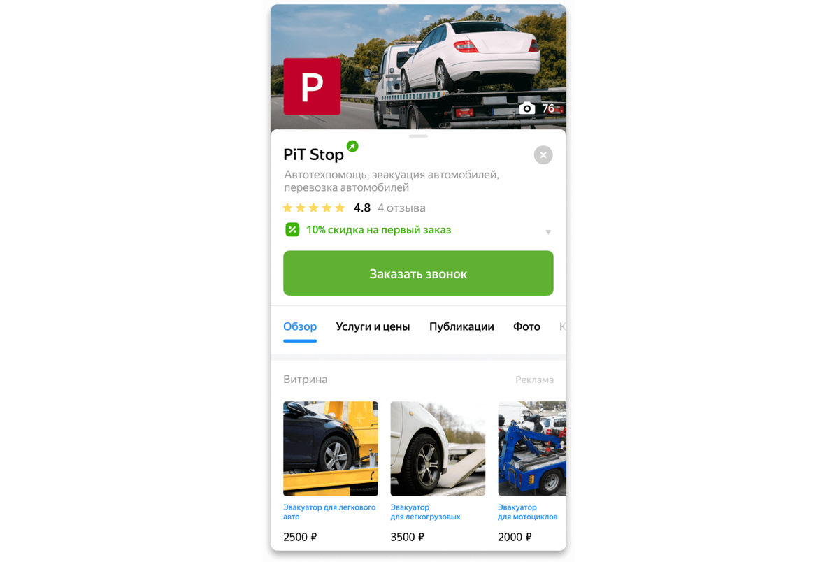Проверьте или заполните карточку организации: время работы, контакты, фотографии, ссылки на сайт и соцсети. Клиенты, которых мы найдём для вас, увидят эту информацию в первую очередь. Чтобы реклама работала эффективнее, добавьте в карточку акцию, кнопку действия или витрину товаров и услуг. Это привлечёт внимание пользователей. Если у вашей компании пока нет сайта, не беда — в карточке уже есть всё необходимое.
