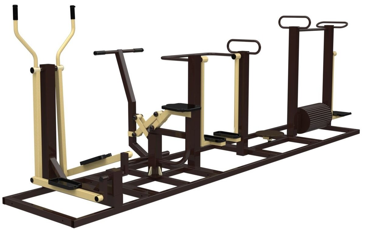- Эллиптические. Данный комплекс оборудования может включать в себя беговую дорожку уличного тела и снаряд степпер.