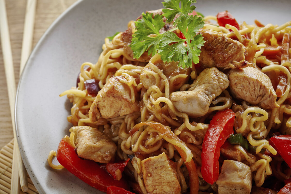 Все, что вам понадобится: любая лапша, куриное филе, пекинская