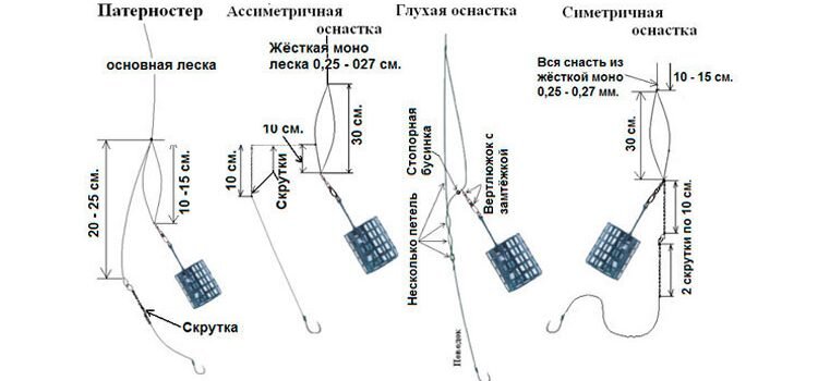 Фидерную оснастку «вертолет» применяют для ловли рыбы на дальних сто метровых дистанциях и допускается использование тонких поводков без перехлестов при забросе. Поводок ставят выше кормушки на 20см.