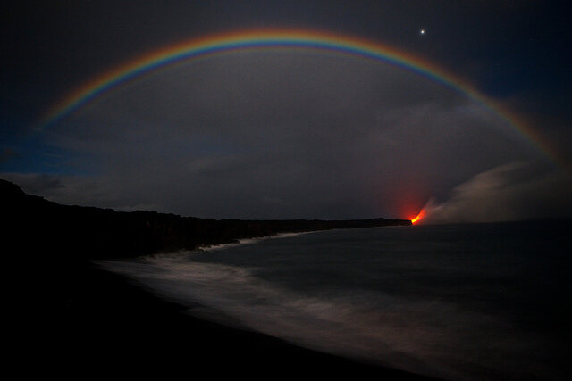 Мы привыкли, что радуга – явление исключительно дневное, и для ее образования нужны капли дождя и солнечный свет. Но свет Луны – это не что иное, как отраженный солнечный свет, а поэтому радуга может появляться и в ночное время.