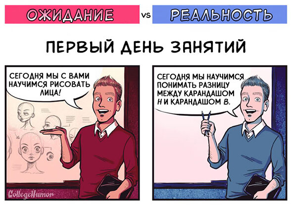 Люди, никогда не обучавшиеся в художественных школах или на курсах рисования, зачастую имеют не совсем верные представления о том, что происходит на этих самых курсах и занятиях!