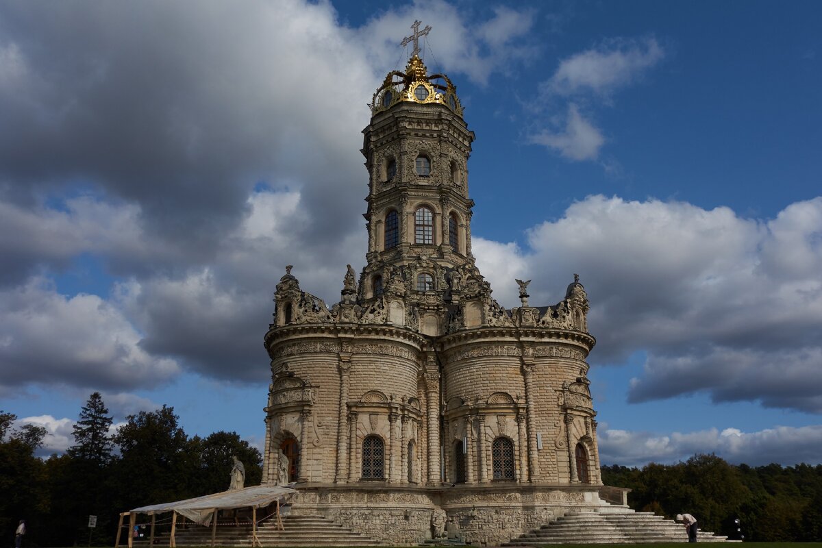 Не буду описывать все подробности длинной истории церкви, усадьбы и ее владельцев. Об этом уже много написано в других источниках. Я лишь хотела поделиться нашими свежими фотографиями этого удивительного архитектурного сооружения. Более подробный увлекательный рассказ об усадьбе и церкви читайте здесь. Множеством старинных фотографий и история усадьбы представлены на ее официальном сайте. Также и у церкви есть свой сайт.