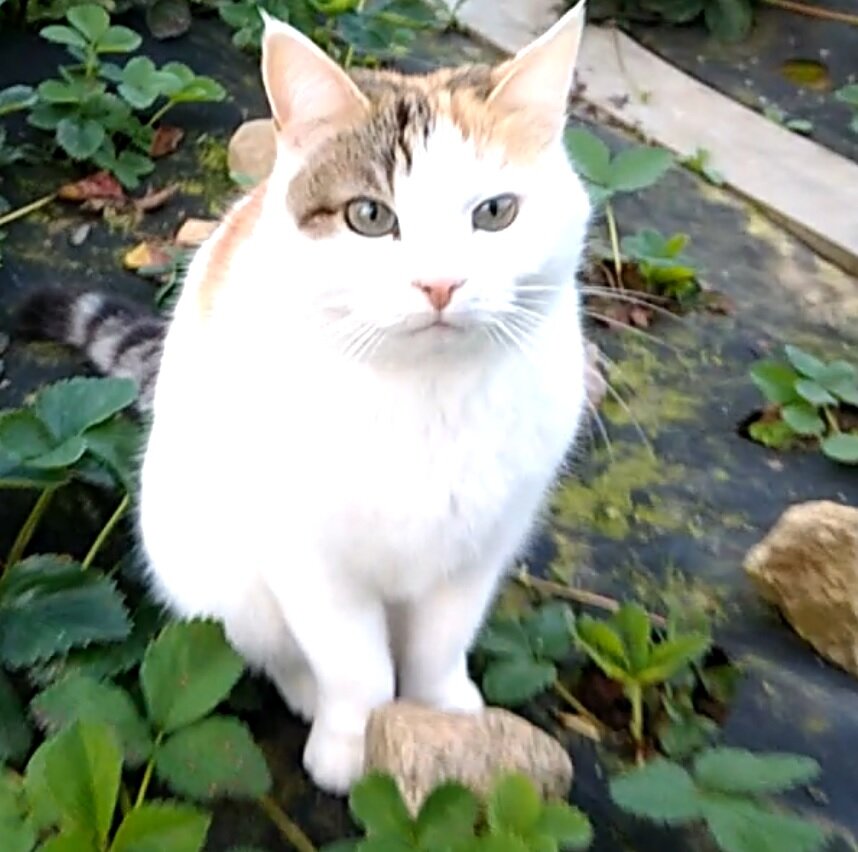 Странные у меня коты, вот ей богу, странные :))) В июне, когда клубники было ну просто завались они ее напрочь игнорировали, прекрасно помня что они хищники а не какие-то там не клубникоядные зверушки. Все больше по мышам промышляли. А тут, как осень наступила, повадились они в клубнике заседать. Да ведь сидят там часами! Высматривают чего-то.... Не понятно что там ищут. Ведь не ягодки все же?