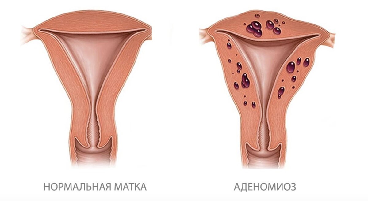 - Диффузная проявляется как равномерное распределение мелких вкраплений эндометрия по всему мышечному слою матки;