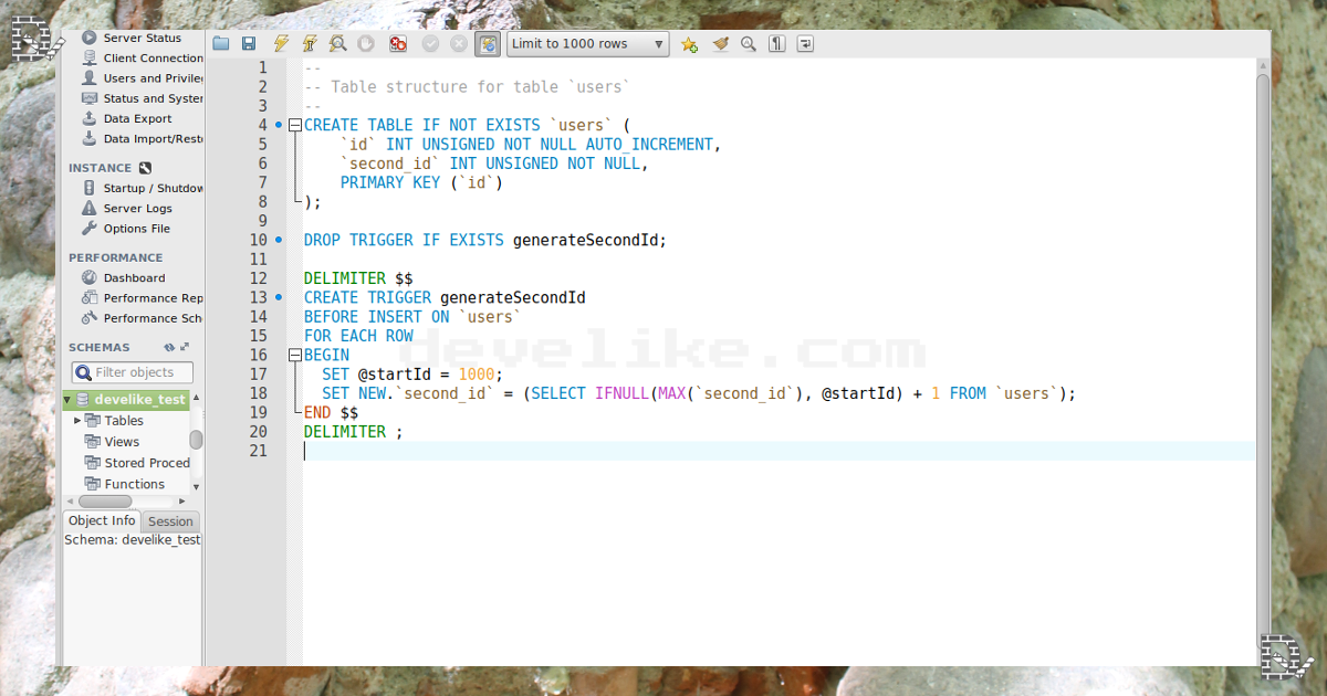 В этой статье я объясню, как добавить AUTO_INCREMENT для второго столбца в MySQL/MariaDB. Атрибут AUTO_INCREMENT можно добавить только для одного столбца, который должен быть определен как первичный ключ. Но вы можете реализовать генерацию порядковых номеров для второго столбца с помощью триггера.