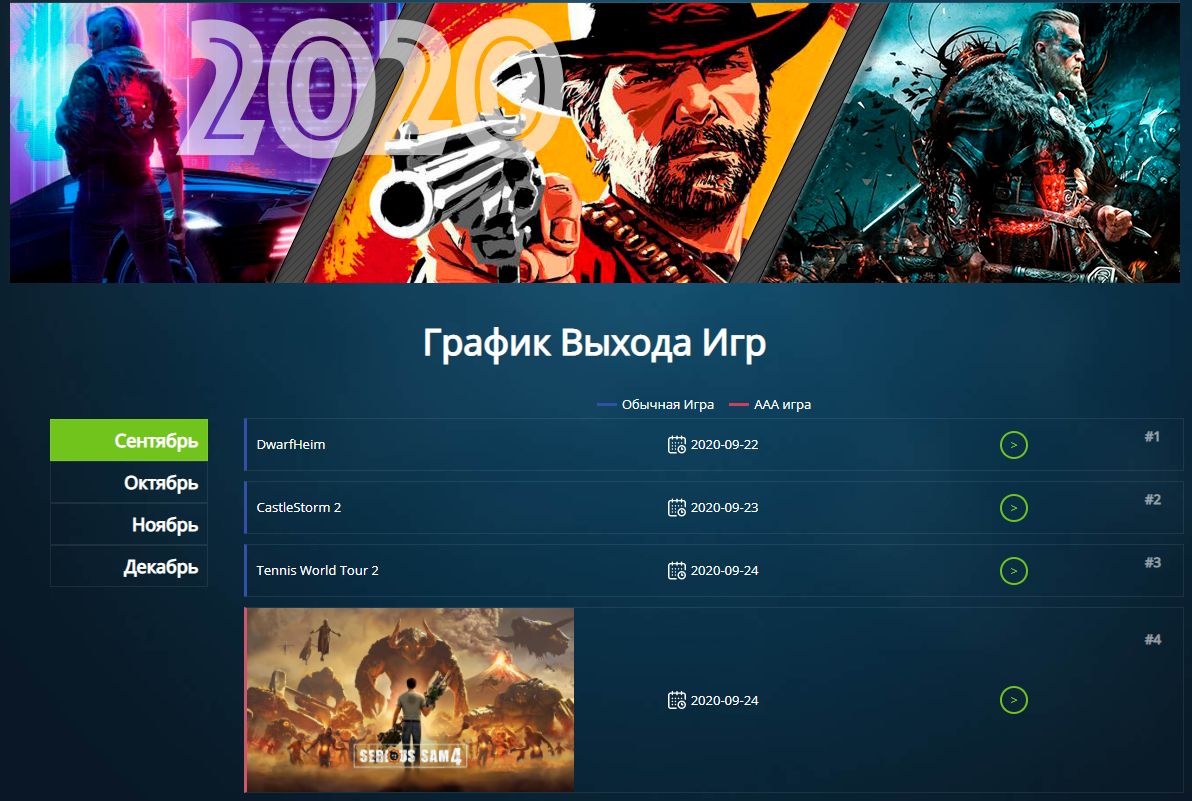 На сайте вы найдете список игр, с датами релизов. А что бы не пропустить громкие релизы AAA игр, игровые новинки имеют выделение и лого игры.