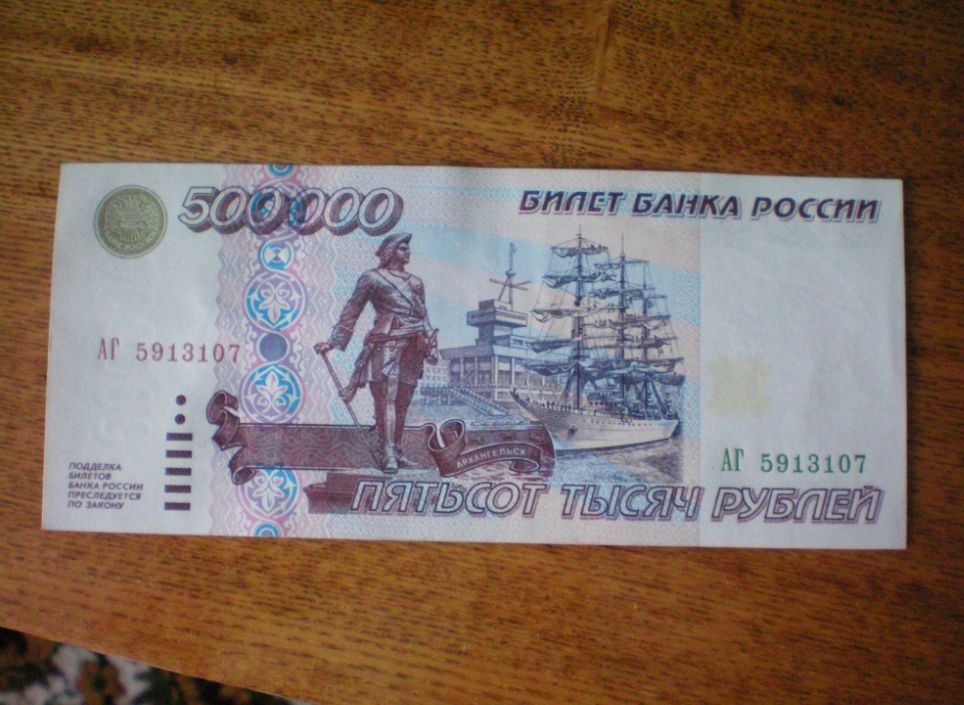 Примерно лет 8-9 назад у меня возникла нужда иметь некоторое количество денег. Для того, чтобы эти деньги появились, я решил продать довольно интересную и редкую купюру, коих у меня на то время было две. Это была купюра в 500000 рублей 1995 года.
