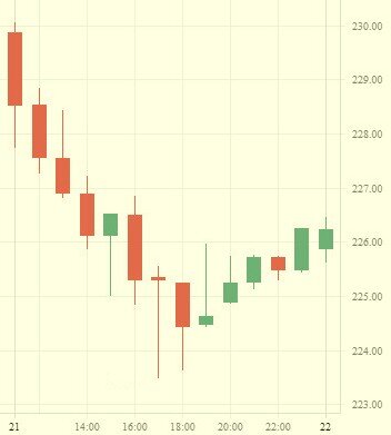 Продавцы не успокоились, пока котировки не дошли к еще более важной поддержке в район 224 — даже здесь последовал ее прокол на часовом графике, прежде чем котировки отскочили. На часовом графике RSI и MAСD развернулись вверх.