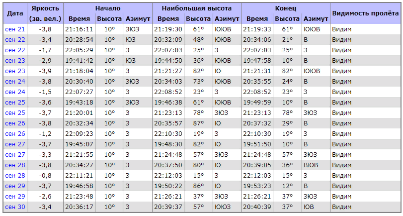 "Станцию будет видно в виде яркой звездочки, пролетающей с юго-запада на юго-восток в течение нескольких минут. А её блеск может достигать -4 звездной величины (для сравнения — как планета Венера)".