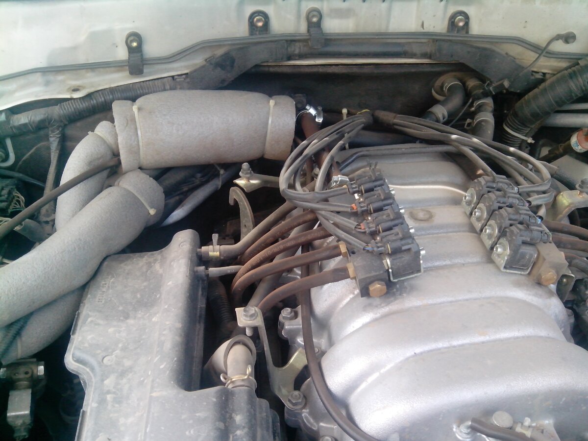 Смотрим как мотор работает на газе — о, да! Троит, трясется, старается заглохнуть, с горем пополам переходит на газ. "Check" уже не горит, за время работы на бензине коррекции пришли в норму. Судя по работе мотора (а из инструментов только голова), газа совсем мало. Либо низкое давление, либо очень мал ход штоков форсунок, либо жиклеры малы. Хотя на холостом ходу газа должно хватать. На вопрос, обращался ли хозяин к установщикам, отвечает, что обращался. Подсоединили компьютер, сделали газа "побольше". И отпустили с миром. Денег взяли интересно? Не спросили, жаль.