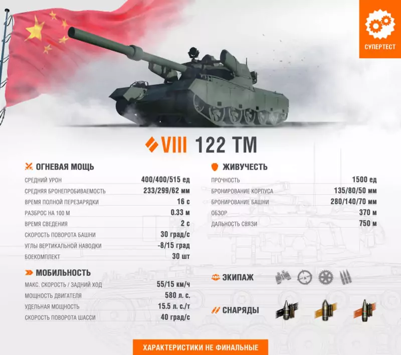 122 TM (Китай, СТ-8, прем). 2 итерация на супертесте.