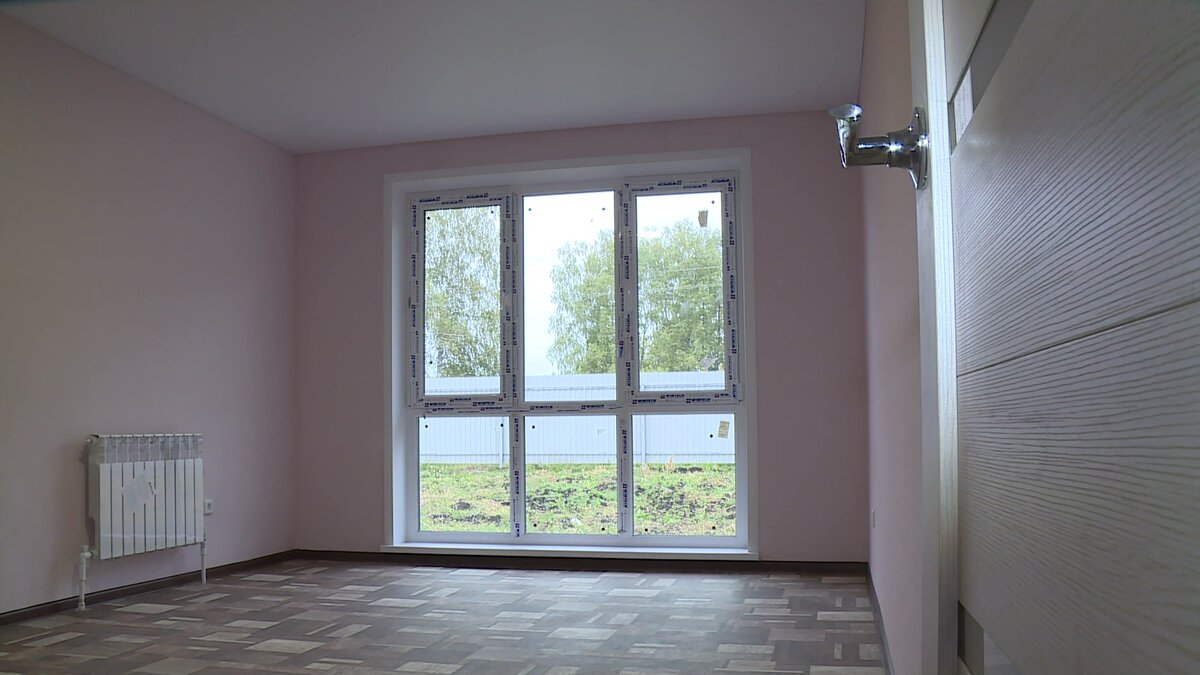«Ну а вот это один из домов, построенных по программе сельской ипотеки. Наш оператор Сергей Надин сейчас стоит в гардеробной, это санузел, совмещенный с ванной. Слева две спальни. Ну а справа – настоящая изюминка, это гостиная с огромными панорамными окнами. Площадь этого дома 74 квадрата, а стоит он всего 2,5 миллиона рублей. И взять эту сумму можно взять в ипотеку всего под 1 процент.»